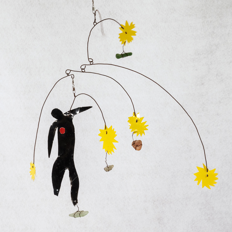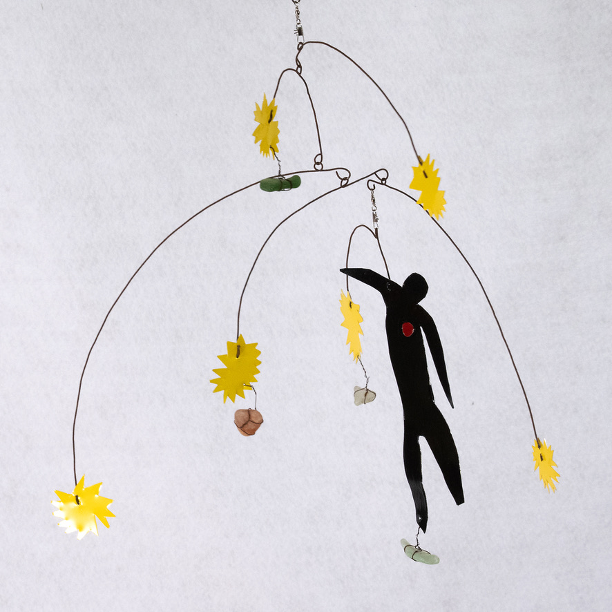 An homage to the classic Henri Matisse ‘Fall of Icarus’ cut out artwork from his Jazz compilations. This mobile features a more visual look at the Icarus piece by Matisse, with Icarus dancing with the stars and showing his passion for flying. This mobile has so many details from the ‘Icarus’ artwork, like the small heart on the silhouette. The perfect mobile for any Matisse fan or as a gift.
