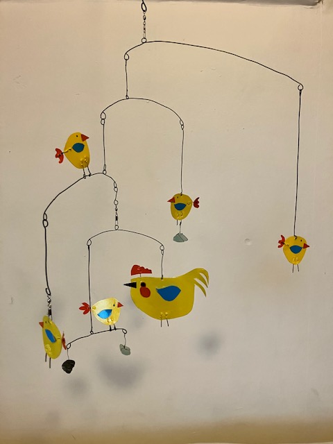 What’s the next best thing to have chickens in your yard? Having a Mother Hen and Chicks mobile! Mother Hen is making sure her babies are safe and sound. Which came first?
